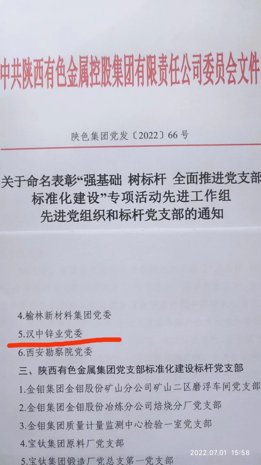 近日,集團黨委對“強基礎 樹標桿 全面推進黨支部標準化建設”專項活動先進工作組先進黨組織和標桿黨支部進行了命名表彰,公司黨委榮獲“‘強基礎 樹標桿 全面推進黨支部標準化建設’專項活動先進黨組織”,硫酸車間黨支部、熔鑄車間黨支部、特材公司機關第一黨支部等3個黨支部被評為“標桿黨支部”。