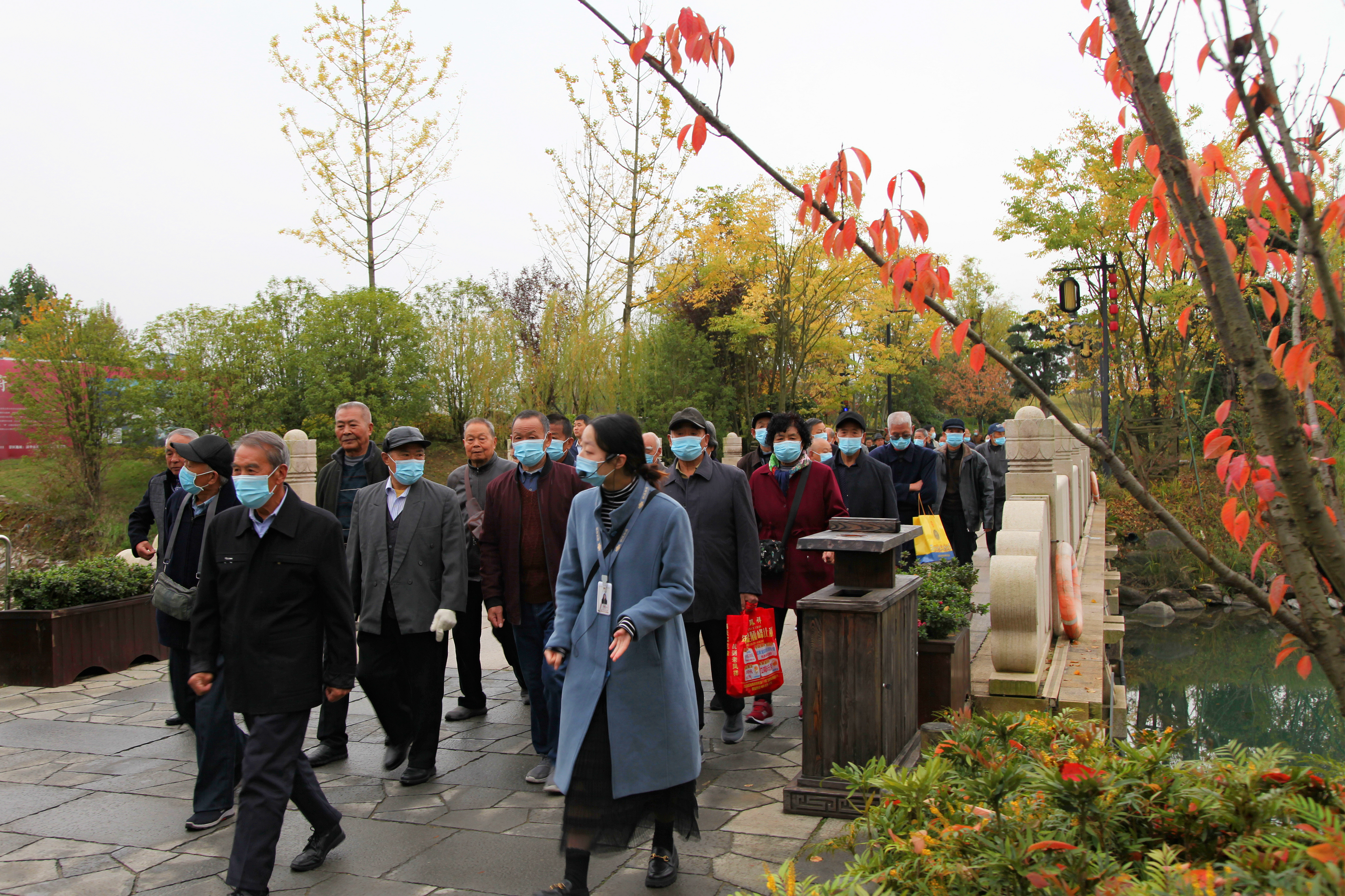 在滿眼秋色之中,老同志們緩步穿行過蒼松挺拔、楓葉流丹、銀杏葉飛舞的湖畔路上,綠地、翠湖、花海、樓宇、雨后清香的空氣……使人遠(yuǎn)離城市喧囂,盡賞秋日漢中特色風(fēng)光。老同志們一路歡聲笑語,時(shí)而步履不停,時(shí)而駐足欣賞,倍感身心愉悅。