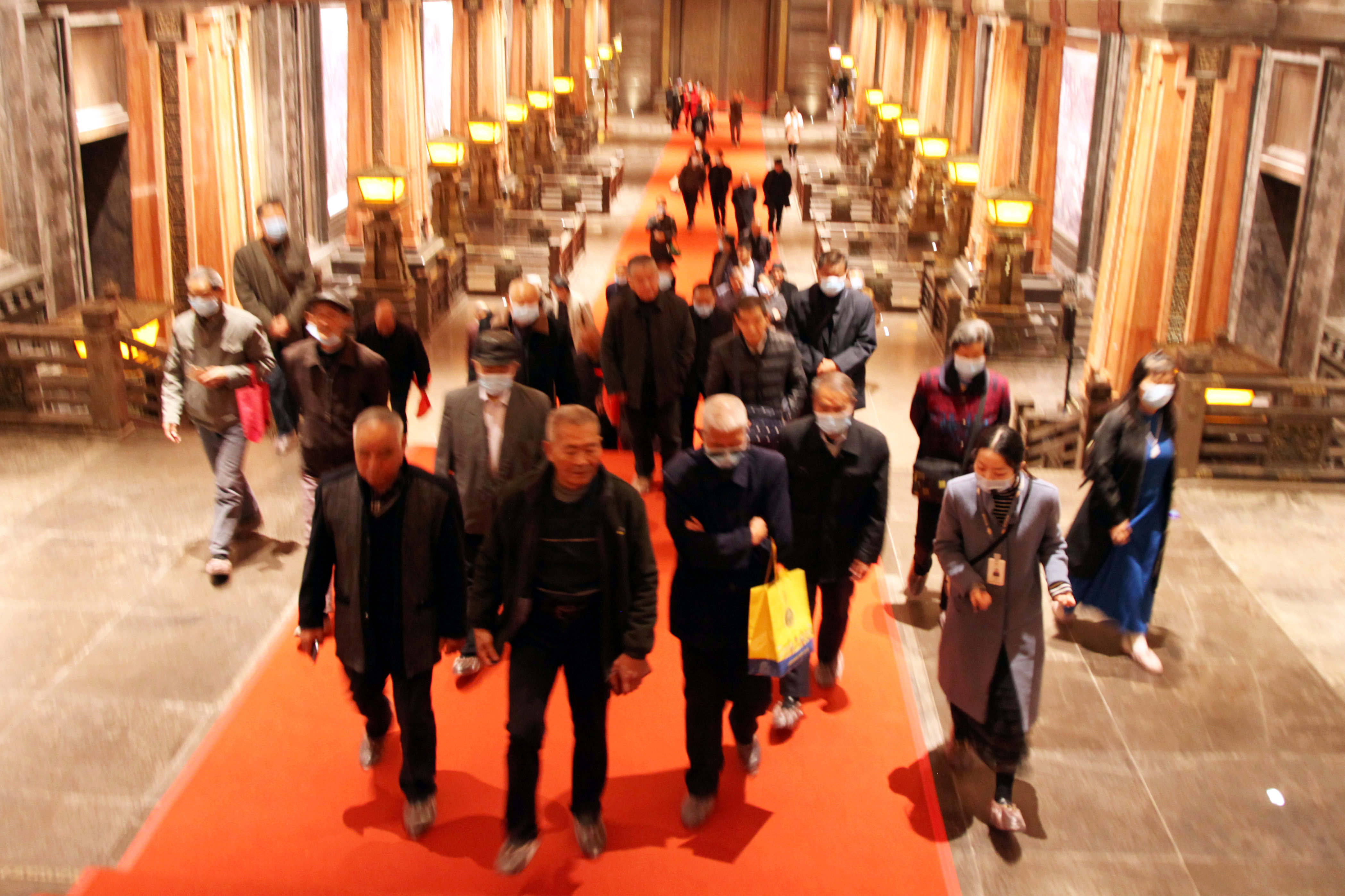 在導(dǎo)游的引領(lǐng)下走進(jìn)漢文化博物館內(nèi),首先映入眼簾的是氣勢恢宏的水下長廊,鋪著紅毯的臺階層層疊起、栩栩如生的壁畫在走廊兩側(cè)一一排開、精雕細(xì)琢的屋頂裝飾金碧輝煌,霎時(shí)間將大家?guī)?/span>那久遠(yuǎn)的大漢夢境之中!