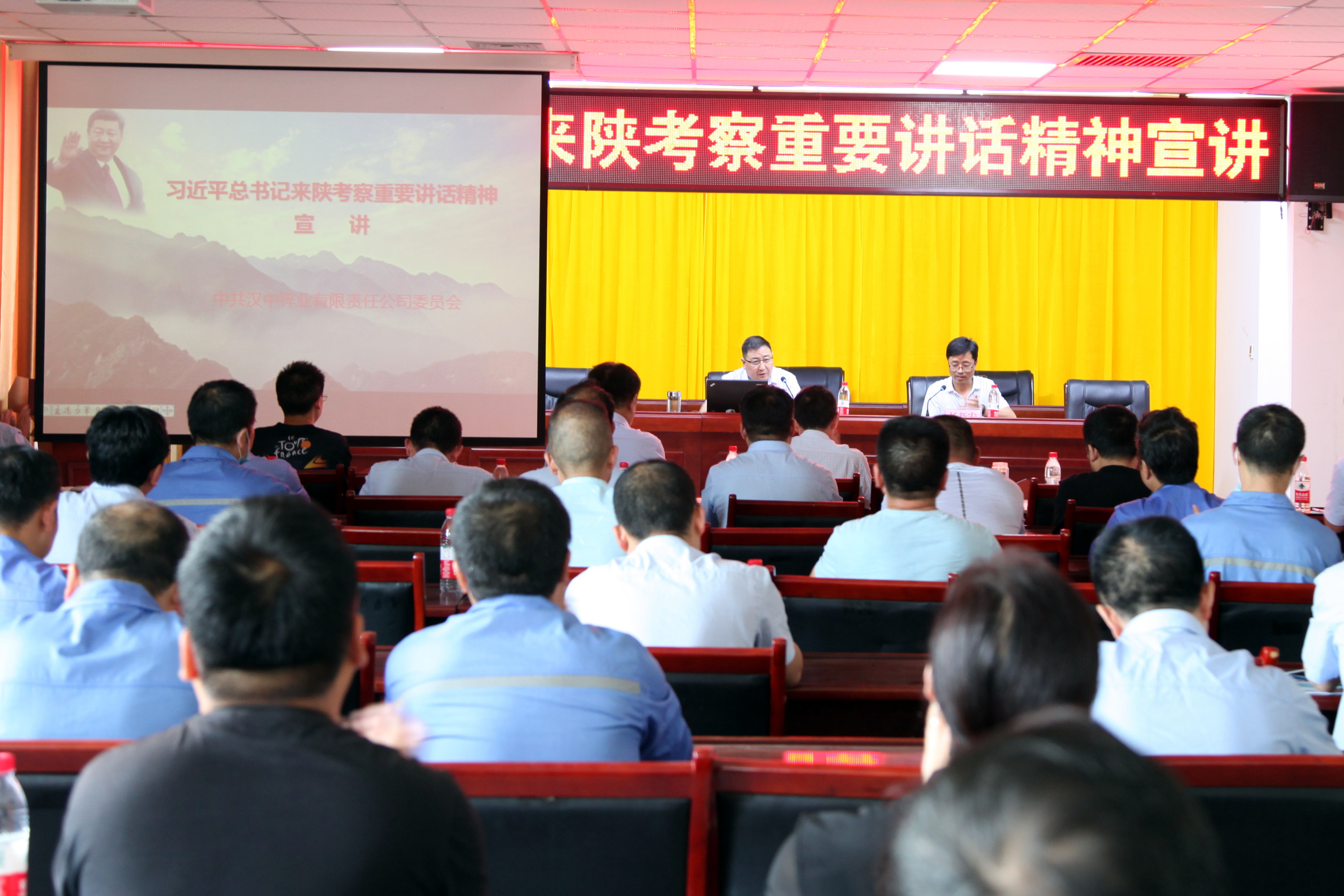 為深入學習宣傳貫徹習近平總書記來陜考察重要講話精神,進一步掀起學習宣傳貫徹的熱潮,按照相關安排,6月1日至8日,漢中鋅業公司黨委書記、董事長何學斌,黨委副書記、總經理王正民,黨委副書記、紀委書記、工會主席張海潮,分別面向特材公司、公司總部行政系統、黨群系統副科級以上管理人員,習近平總書記來陜考察重要講話重要指示精神作主題宣講報告。